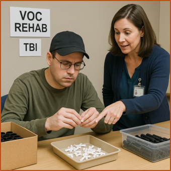 In product assembly tasks, a vocational rehabilitation coach should focus on evaluating and strengthening the participant’s eye-hand coordination, fine motor skills, and ability to follow sequential instructions. The coach should observe whether the participant can understand and replicate assembly steps with consistency and accuracy. Attention to safety practices, especially when handling tools or delicate materials, is critical. Participants should also be encouraged to maintain a steady work rhythm while aiming for precision, which builds the foundation for entry-level manufacturing or home-based product work. The coach should help set realistic production timelines and gently reinforce the importance of meeting quality and deadline expectations to simulate real-world work scenarios.