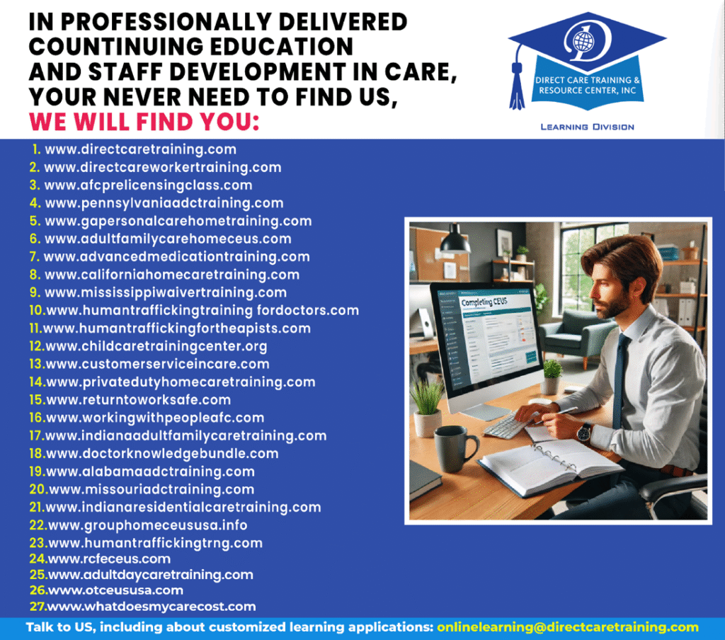 Another Blog Post by Direct Care Training & Resource Center, Inc. Photos used are designed to complement the written content. They do not imply a relationship with or endorsement by any individual nor entity and may belong to their respective copyright holders.