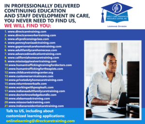 Another Blog Post by Direct Care Training & Resource Center, Inc. Photos used are designed to complement the written content. They do not imply a relationship with or endorsement by any individual nor entity and may belong to their respective copyright holders.